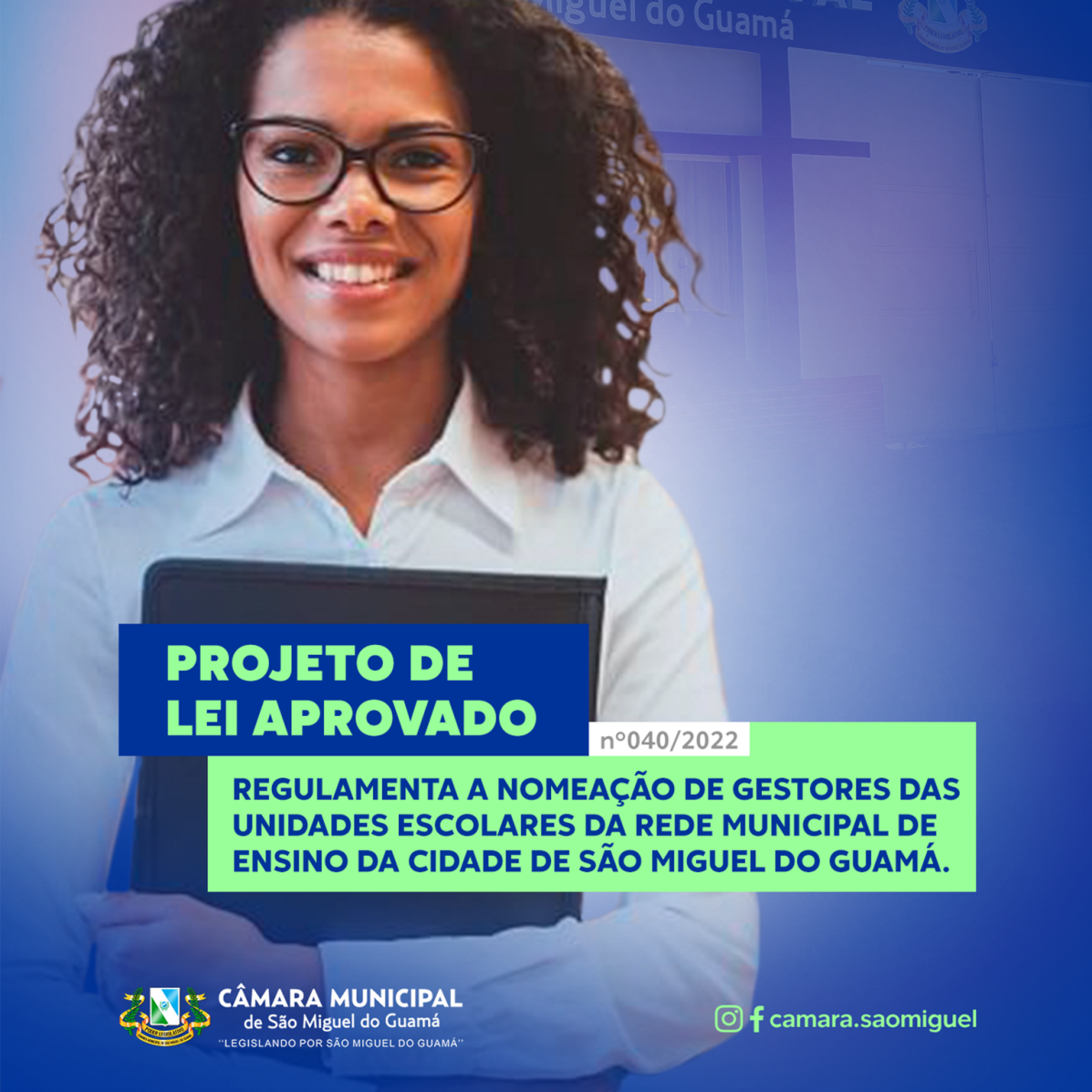 Com origem no poder executivo que versa sobre a nomeação de diretores escolares no município, estabelecendo critérios para a seleção desses gestores que será feita em conjunto com toda a comunidade escolar de São Miguel do Guamá. Esses critérios foram construídos com apoio dos entes educacionais de nossa cidade (SINTEPP,CME,FME)